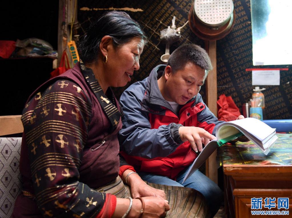西藏山南市社保工作人員在隆子縣玉麥鄉(xiang) 玉麥村村民央宗家中進行社保信息補充登記。新華社記者 晉美多吉 攝