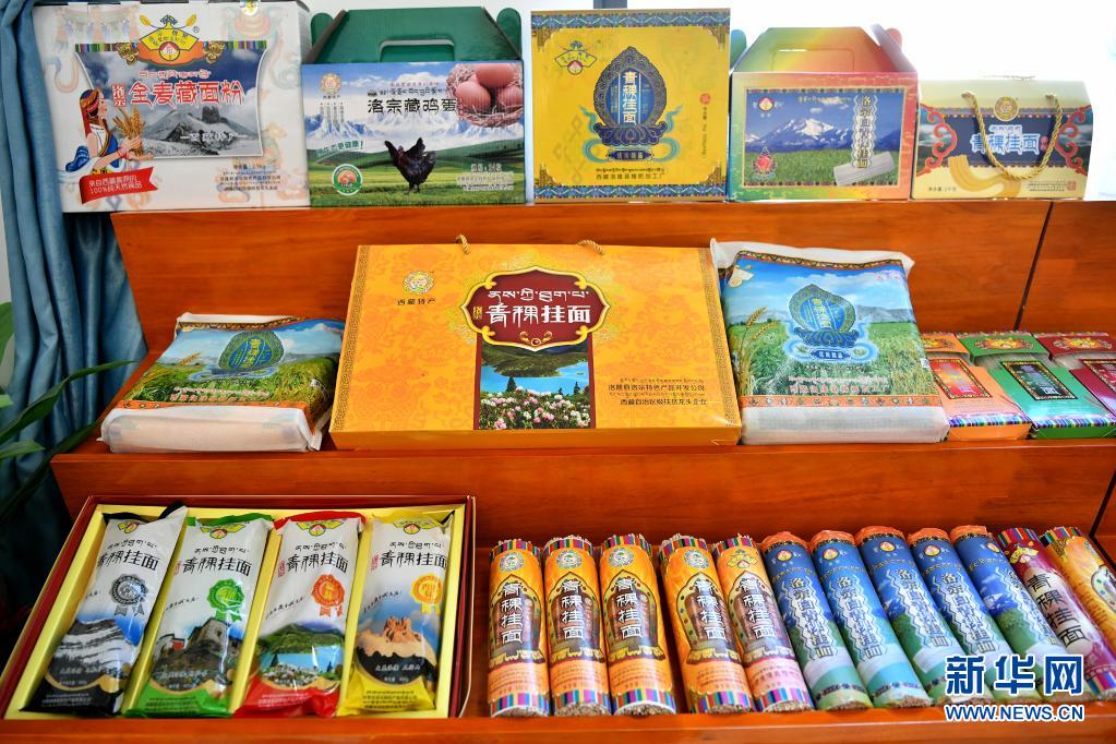 洛宗特色產(chan) 品開發公司生產(chan) 的青稞掛麵等深加工產(chan) 品(7月24日攝)。新華社記者 李鑫 攝