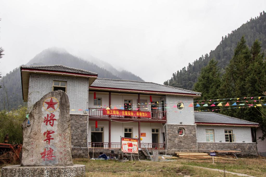 在易貢茶場,一座二層石木結構的小樓前立著一塊石碑,上麵用紅漆書(shu) 寫(xie) 著“將軍(jun) 樓”3個(ge) 大字。據介紹,這是當年十八軍(jun) 軍(jun) 長張國華將軍(jun) 在藏期間的辦公起居地之一。“部隊留下了10幢樓房和11幢平房,這是茶場最珍貴的紅色遺跡。”才程說。
