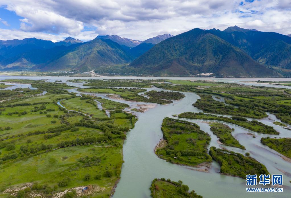 這是6月19日拍攝的林芝市米林縣境內(nei) 的瓊林村(無人機照片)。新華社記者 普布紮西 攝