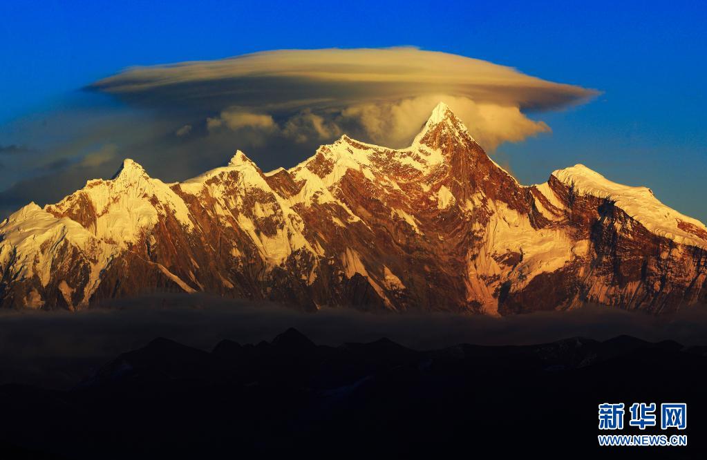 這是2017年12月24日拍攝的夕陽下的南迦巴瓦峰。新華社發(欒遠春 攝)