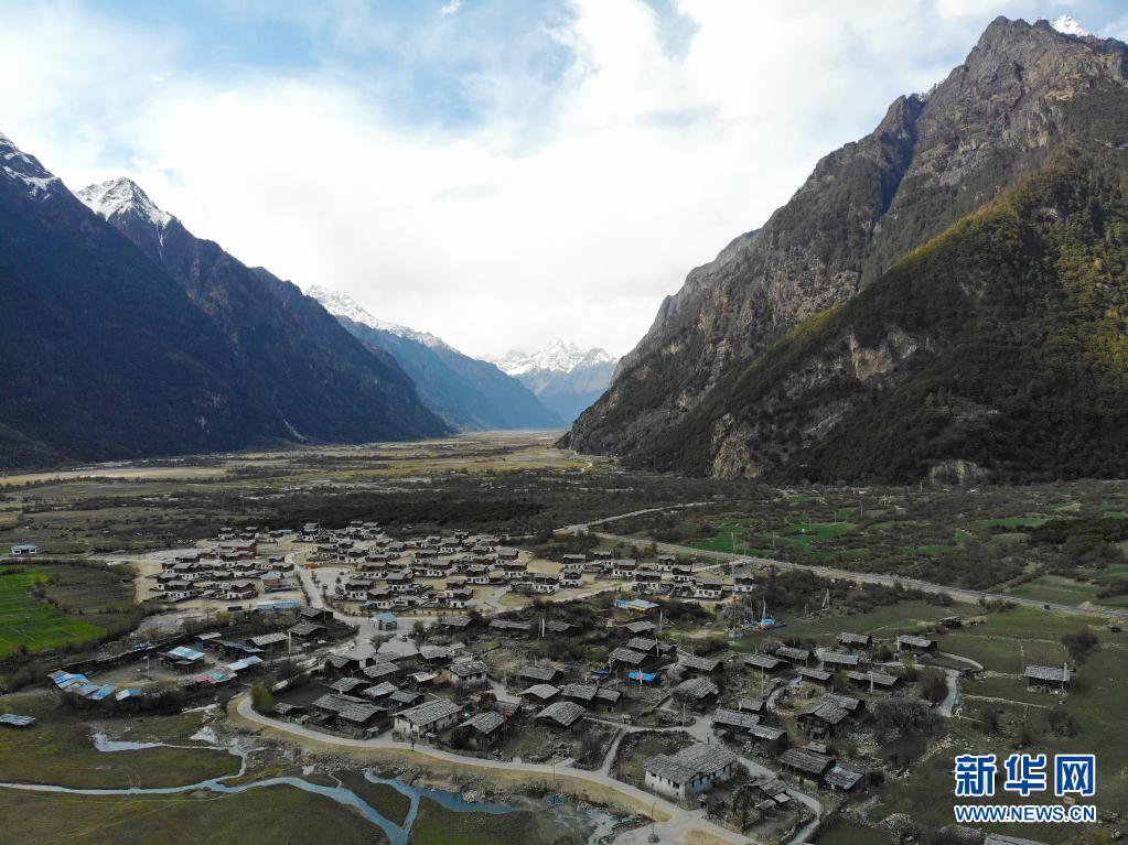 這是4月30日拍攝的林芝市工布江達縣境內(nei) 的古村落錯高村(無人機照片)。新華社記者 孫瑞博 攝