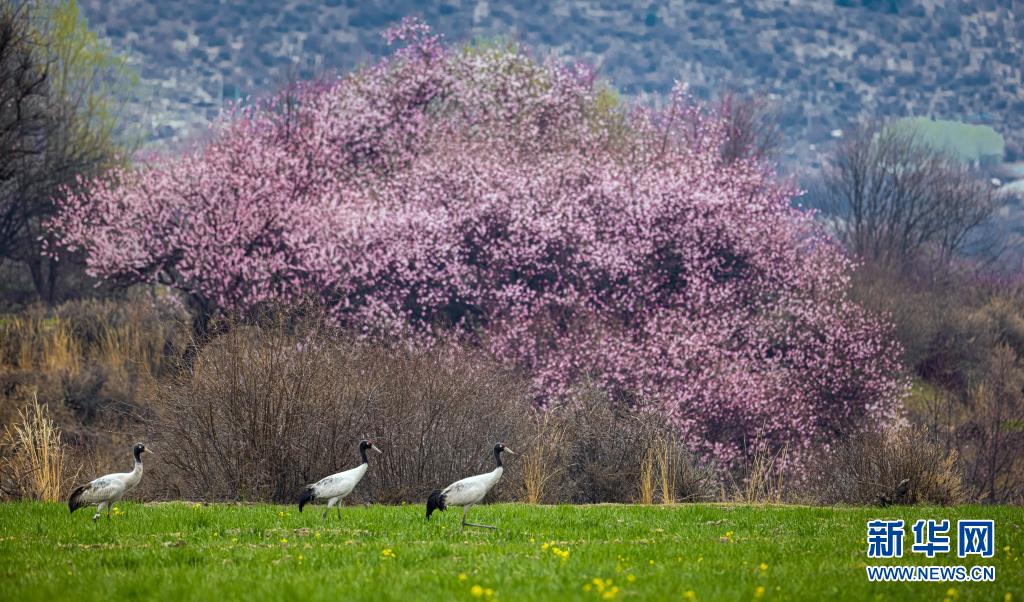 這是3月26日在林芝境內(nei) 拍攝的黑頸鶴。新華社發(張寧 攝)