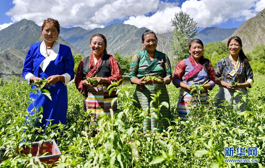 林芝市朗縣洞嘎鎮滾村的村民展示剛剛采摘的辣椒(2020年7月27日攝)。新華社記者 張汝鋒 攝