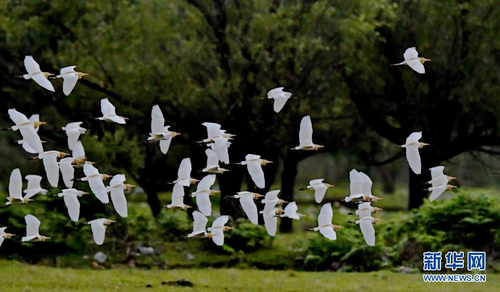 這是5月22日在易貢國家地質公園拍攝的牛背鷺。新華社記者 張汝鋒 攝