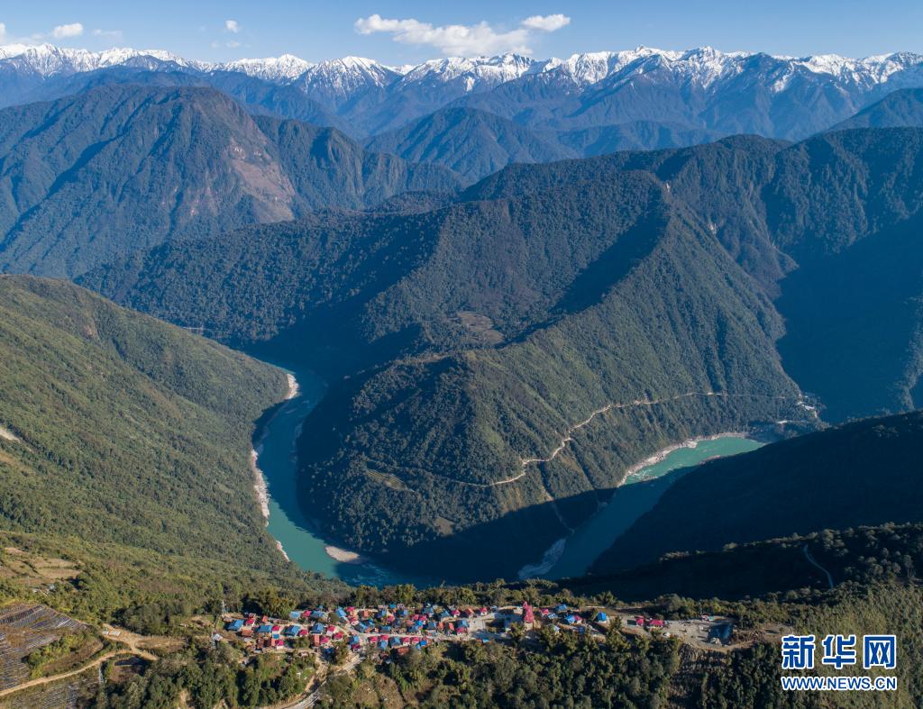 這是2月9日拍攝的位於(yu) 雅魯藏布江邊的林芝市墨脫縣德興(xing) 鄉(xiang) 巴登則村(無人機照片)。新華社記者 孫非 攝