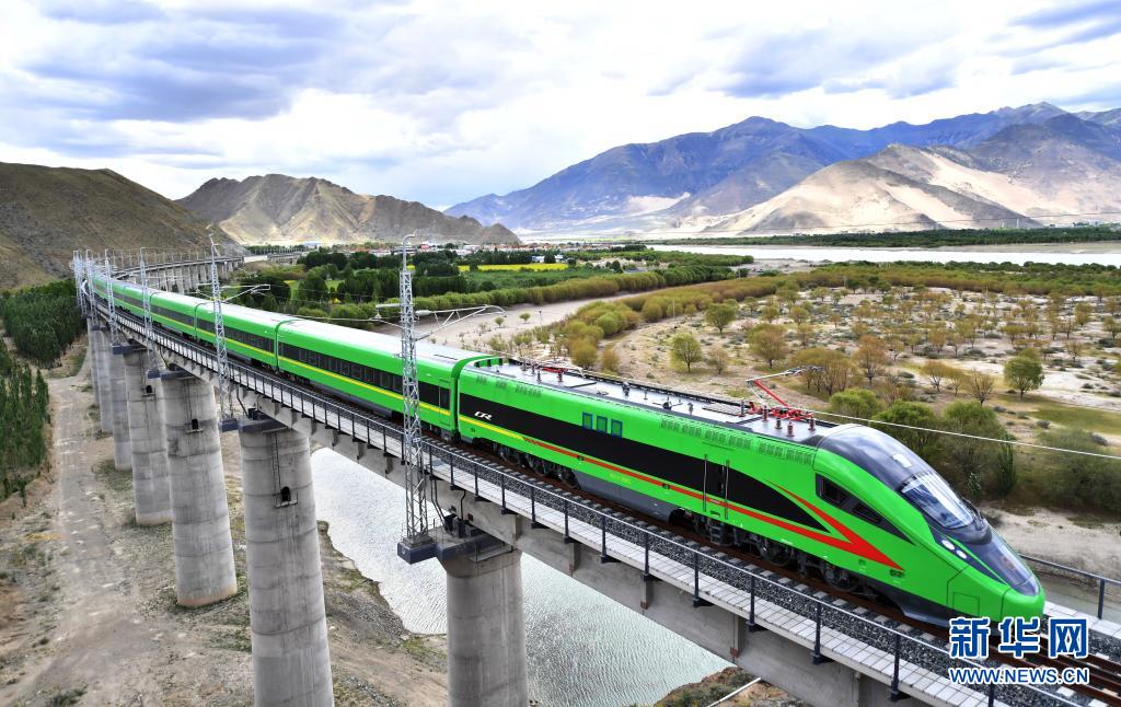 這是6月16日拍攝的行駛在拉林鐵路上的複興(xing) 號列車。新華社記者 覺果 攝