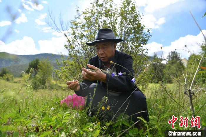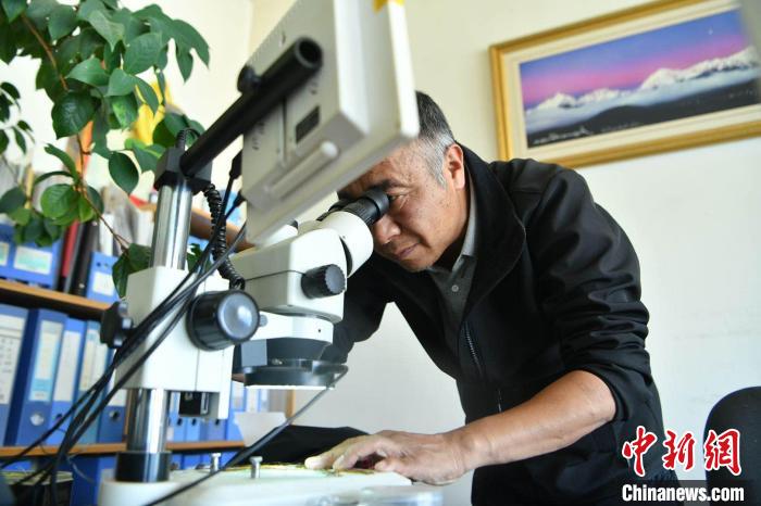 圖為(wei) 方震東(dong) 在香格裏拉高山植物園觀察植物。劉冉陽 攝