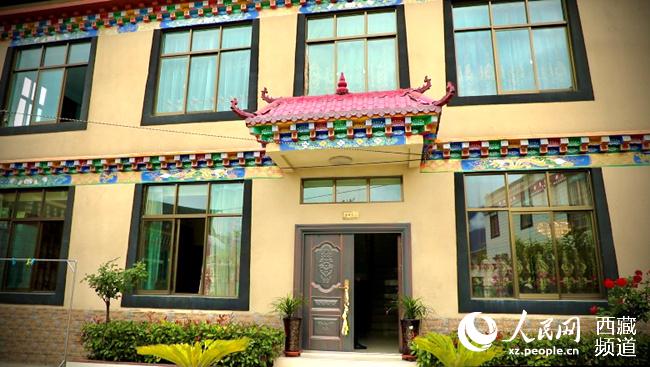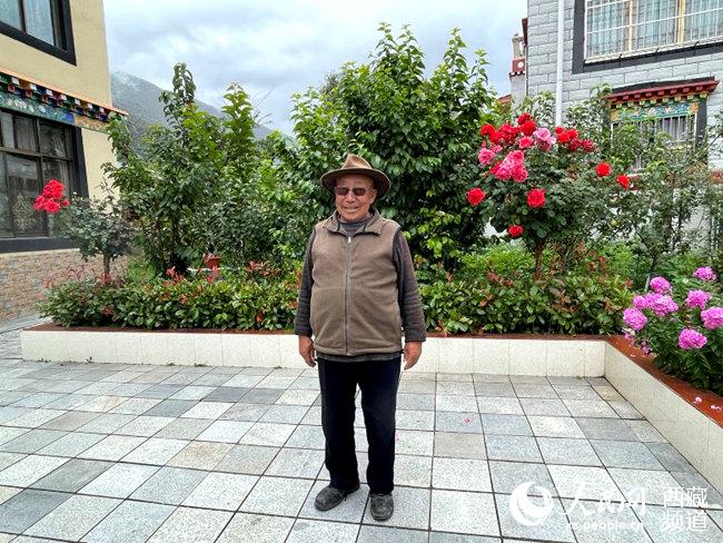 村道整潔平坦,藏式小樓特色十足,家家戶戶飄出花香果香……走進巴吉村,殷實富足的氣息隨處可見。沿著村道一路向裏,看到一棟紅瓦黃牆的二層小樓,門口的牌子上寫(xie) 著“光榮之家”,這就是達龍老人的家。