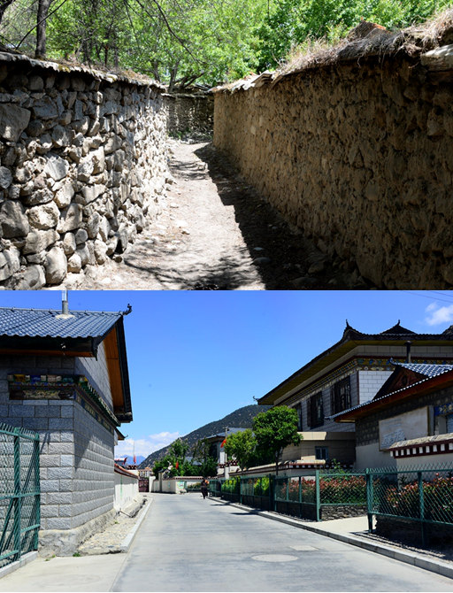 巴吉村新(下)舊(上)村貌對比。巴宜區委宣傳(chuan) 部供圖