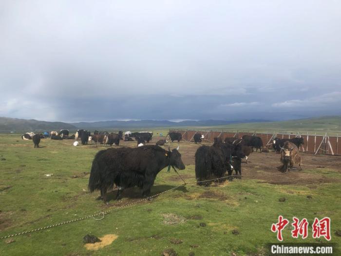 色尼區嘎爾德畜牧業(ye) 示範基地上的犛牛。中新網左宇坤 攝