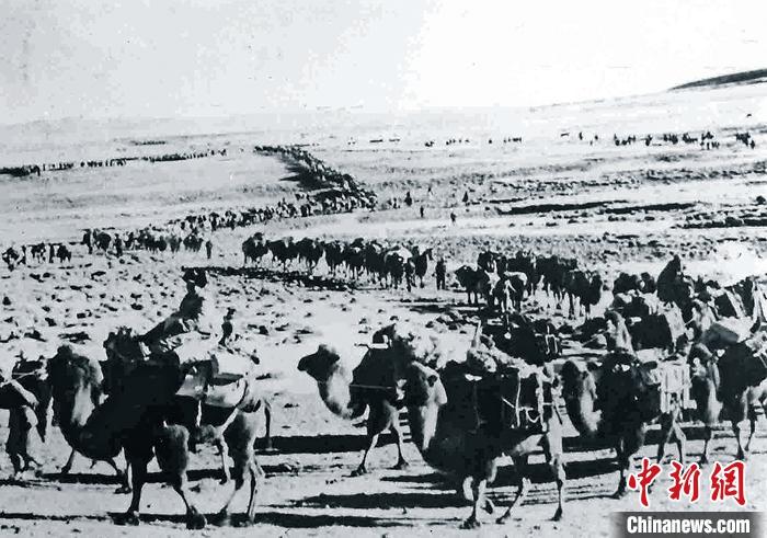 資料圖為(wei) 1953年11月,西藏運輸總隊駝工往西藏徒步運輸物資。 中新社發 莫河駱駝場曆史陳列館 供圖