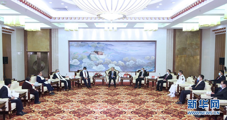 8月18日,以中共中央政治局常委、全國政協主席汪洋為(wei) 團長的中央代表團飛抵拉薩,出席西藏和平解放70周年慶祝活動。受黨(dang) 中央和習(xi) 近平總書(shu) 記委托,汪洋在拉薩飯店看望在藏領導幹部、老同誌白瑪赤林、帕巴拉·格列朗傑和列確、巴桑,以及阿沛·阿旺晉美同誌家人代表,向他們(men) 表示親(qin) 切問候。新華社記者 劉彬 攝