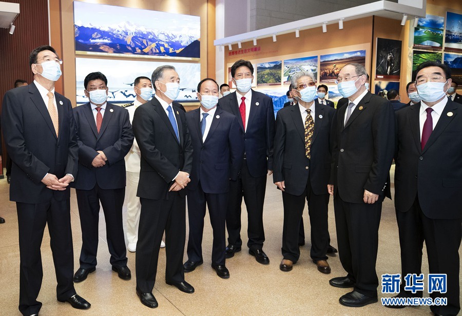 8月18日,以中共中央政治局常委、全國政協主席汪洋為(wei) 團長的中央代表團飛抵拉薩,出席西藏和平解放70周年慶祝活動。這是汪洋率代表團全體(ti) 成員來到西藏博物館,出席《黨(dang) 的光輝照邊疆 錦繡高原譜華章——西藏和平解放70周年成就展》開幕式並參觀展覽。新華社記者 黃敬文 攝