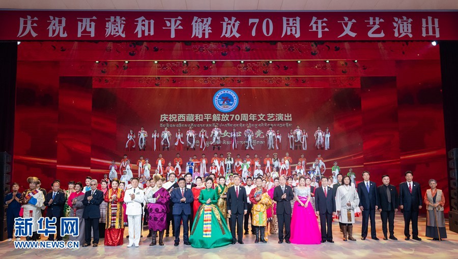 汪洋觀看慶祝西藏和平解放70周年文藝演出《西藏兒(er) 女心向黨(dang) 》