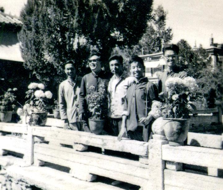 1965年在拉薩參加西藏自治區成立大會(hui) 時的留影(左一為(wei) 梁世雄,左四為(wei) 其加達瓦)。受訪者供圖