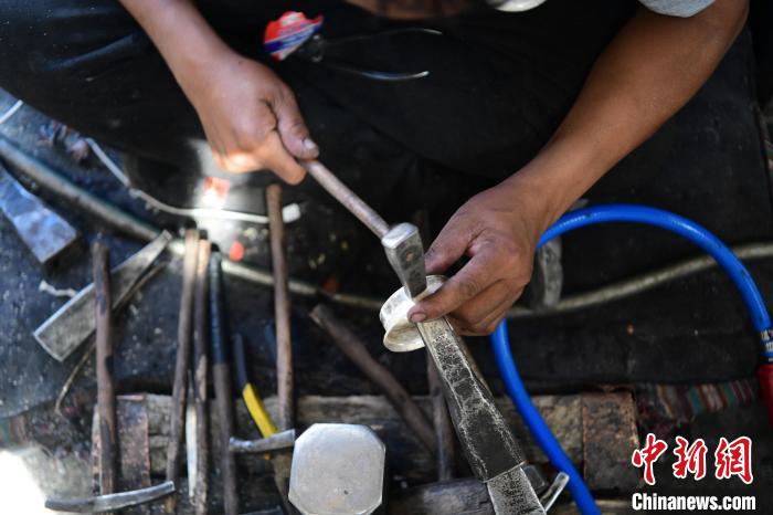 圖為(wei) 工人正在使用鐵錘塑型。貢嘎來鬆 攝
