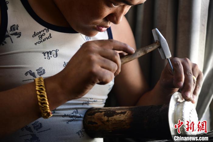 “純手工打造才能傳(chuan) 承最原始的民族文化”。近日,西藏日喀則市桑珠孜區紮西吉彩村,國家級非物質文化遺產(chan) ——紮西吉彩金銀鍛銅技藝的57歲傳(chuan) 承人拉瓊接受中新網記者采訪時如是說。
