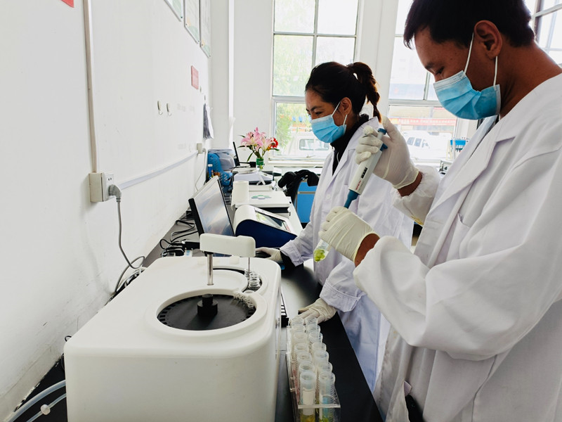 圖為(wei) 西藏拉薩東(dong) 嘎農(nong) 副產(chan) 品批發市場快檢實驗室工作人員在對該市場內(nei) 農(nong) 副產(chan) 品進行檢測。記者 央金 攝