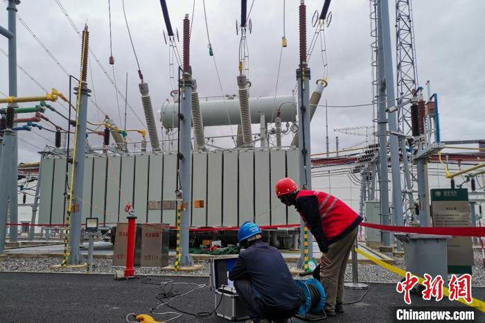 工作人員對變電設備進行檢修。國網西藏電力有限公司 供圖