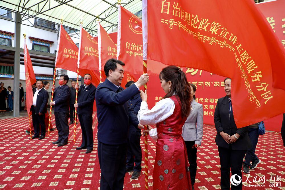 向理論政策宣講誌願服務分隊授旗。人民網 次仁羅布攝