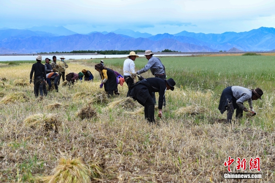 9月8日,西藏自治區拉薩市林周縣春堆鄉(xiang) 的農(nong) 民在搶收青稞。金秋時節,拉薩河穀一帶青稞成熟,農(nong) 民在青稞田忙碌,一片繁忙景象。中新社記者 貢嘎來鬆 攝