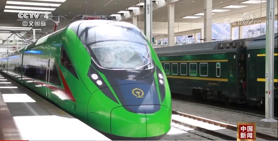 總台央視記者 宋達:我現在乘車來到拉林鐵路的林芝站。今年6月25日,拉林鐵路正式開通運營,這標誌著川藏鐵路的建設取得了重大進展,也意味著複興(xing) 號首次駛上了青藏高原,結束了藏東(dong) 南地區不通鐵路的曆史。我們(men) 可以看到拉林鐵路的複興(xing) 號列車被設計成了綠色的外觀,有人形象地把它說成“綠巨人”。