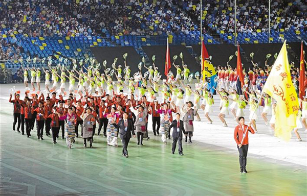 伴隨著慷慨激昂的音樂(le) ,西藏體(ti) 育代表團的運動健兒(er) 邁著矯健的步伐走進西安奧體(ti) 中心體(ti) 育場,開啟第十四屆全國運動會(hui) 的征程。