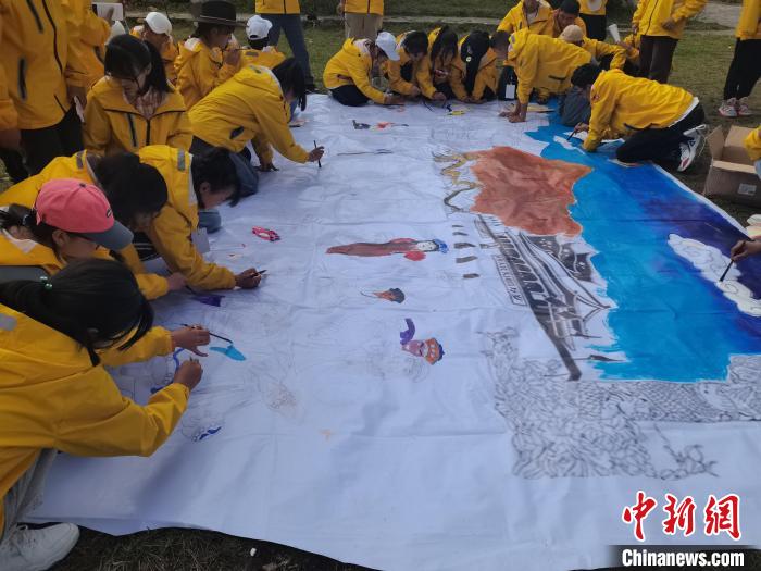 圖為(wei) 學生們(men) 共繪一幅“中華民族一家親(qin) ”。 西藏青少年實踐教育基地供圖