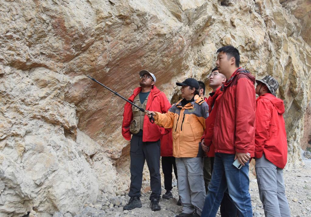 地質醫生——中國科學院地理科學與(yu) 資源研究所一行科考人員,在喜馬拉雅山脈進行災害鏈考察工作。新華社記者杜剛 攝