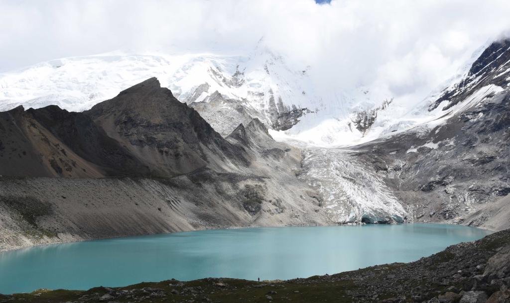 西藏日喀則市亞(ya) 東(dong) 縣境內(nei) ,超過海拔5000米的冰川下有一個(ge) 湖泊——朗錯。通過分析壩體(ti) 形態特征,科考隊初步分析判斷這是一個(ge) 冰川終磧體(ti) 形成的堰塞湖,即冰湖。冰湖是喜馬拉雅山脈常見的堰塞湖類型之一。