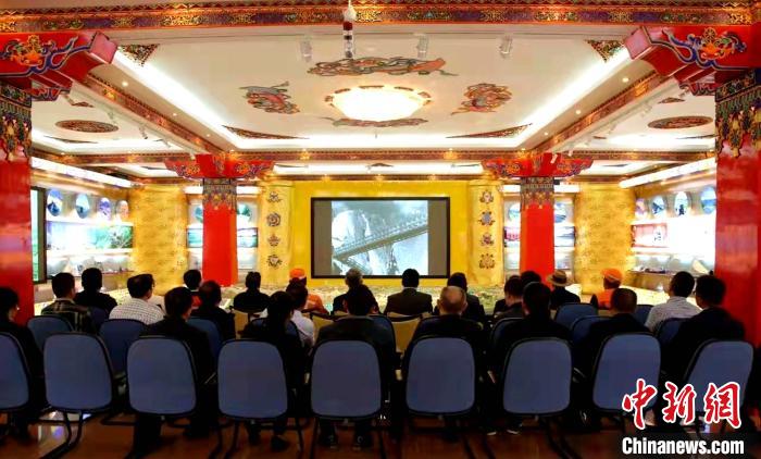 圖為(wei) 參觀者在西藏自治區“兩(liang) 路”精神紀念館觀看“兩(liang) 路”宣傳(chuan) 片。西藏自治區交通運輸廳供圖