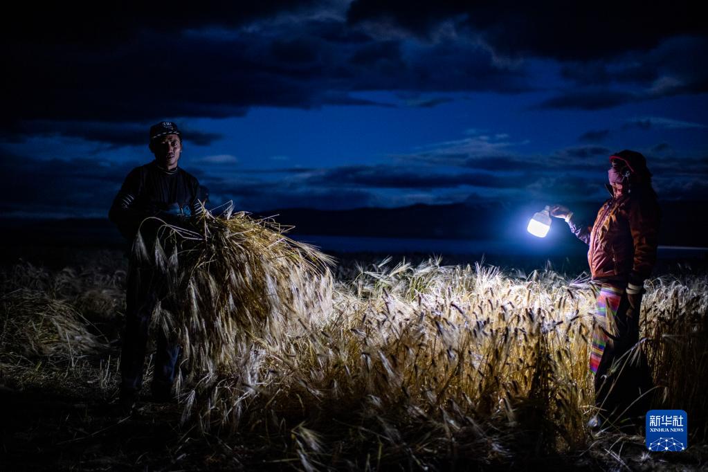 9月23日清晨,西藏那曲市尼瑪縣文部鄉(xiang) 文部南村村民開鐮收割。新華社記者 孫瑞博 攝