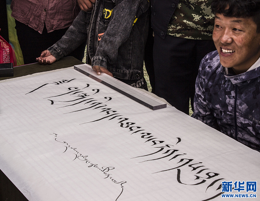 9月23日,群眾(zhong) 在活動現場觀賞藏文書(shu) 法。新華網 達次 攝
