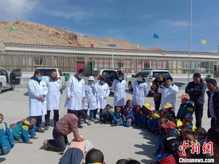 醫療隊為(wei) 波絨鄉(xiang) 中心小學師生進行心肺複蘇現場培訓。煙台援藏醫療隊供圖