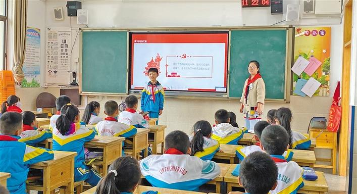 圖為(wei) 林芝市第二小學的少先隊員向同學們(men) 講述紅色故事。記者 張猛 攝