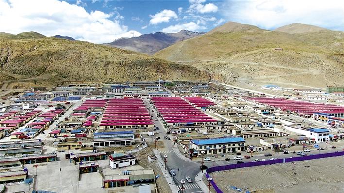 在這座現代化的小區裏,一排排黃色的藏式民居整齊劃一,迎風招展的五星紅旗格外醒目,小區周邊學校、醫院、農(nong) 貿市場等配套設施一應俱全。沐浴著和煦的陽光,孩子們(men) 在巷子裏奔跑嬉鬧,老人們(men) 圍攏在一起拉家常。