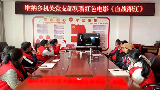 堆納鄉(xiang) 新時代文明實踐所組織黨(dang) 員誌願服務隊觀看紅色電影。