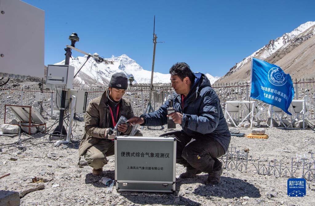 西藏自治區氣象局工作人員在珠峰大本營自動氣象站組裝便攜式綜合氣象觀測儀(yi) ,為(wei) 2020珠峰高程測量活動提供氣象保障(2020年5月10日攝)。新華社記者 普布紮西 攝