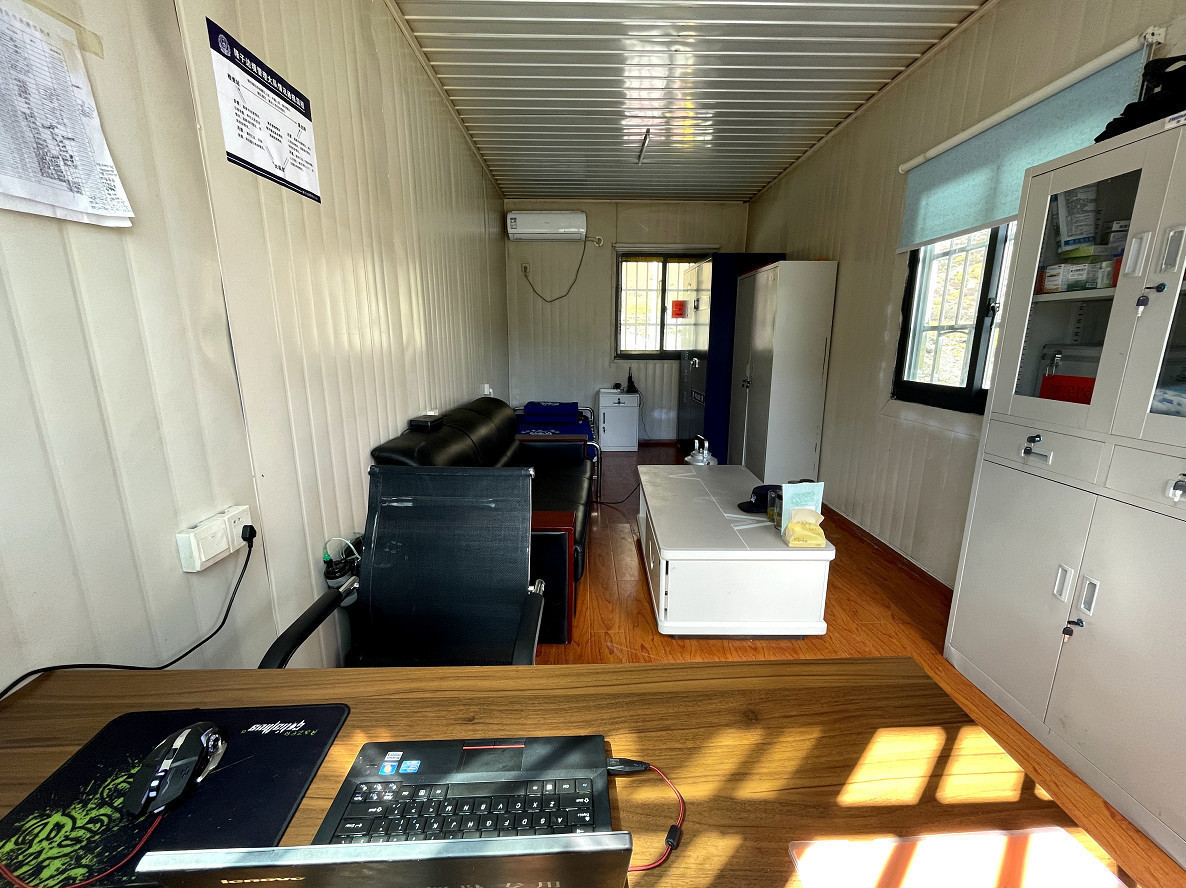 “最開始,我們(men) 是住在旁邊那個(ge) 鐵皮房子裏,晚上睡覺時還漏風,取暖基本靠“抖”,睡在被窩裏縮成一團,直到睡熱了之後才能把身子伸直。在這裏執勤就沒有脫下過毛衣,哪怕是在有太陽的白天,換衣服要等到回到駐地換勤以後。後來支隊為(wei) 我們(men) 修建了這個(ge) 過渡性的移動方艙,空調、烤火爐、熱水器、室內(nei) 廁所、冰箱、沙發等設備都有了,隻要把門關(guan) 好了,取暖器和空調一開,室內(nei) 就像家裏那麽(me) 暖和。說實話,這條件的跟之前比,就是鳥槍換炮”。周建馳繼續補充到。