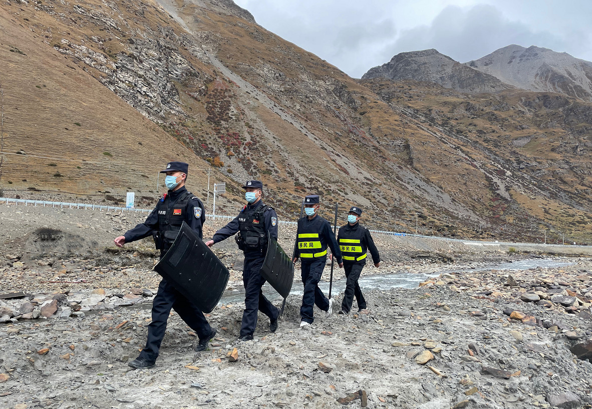 圖為(wei) 曲桑邊境檢查站民警開展防避關(guan) 繞卡巡邏工作 鍾鑫 攝