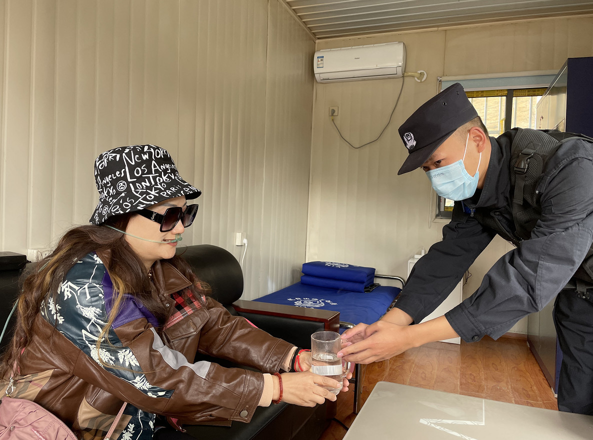 “遇到過兩(liang) 名來自廣州的中年婦女自駕遊經過這裏,爬坡時均出現了高反,車子又開不上山,返回到了我們(men) 這裏,我們(men) 給她們(men) 提供了氧氣和藥品,又找聯防隊員幫她們(men) 把車開到了山頂,最後看到她們(men) 滿是感激的笑容就感受到了幫助別人原來是這麽(me) 美好”,民警彭錚淩給大家分享自己曾經的經曆時還是顯得很興(xing) 奮。