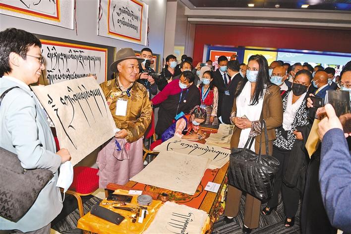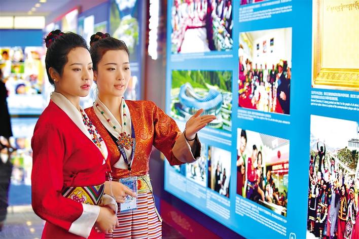 一幅幅精美絕倫(lun) 的照片、一幀幀生動直觀的視頻畫麵、一個(ge) 個(ge) 獨特壯觀的實物模型、一次次活潑有趣的互動展示,全麵、立體(ti) 、生動地向中外嘉賓展示了西藏和平解放70年來經濟社會(hui) 發展的曆史性成就,展示了中國共產(chan) 黨(dang) 團結帶領西藏各族人民創造了彪炳千秋、利澤萬(wan) 代、亙(gen) 古未有的曆史功績。