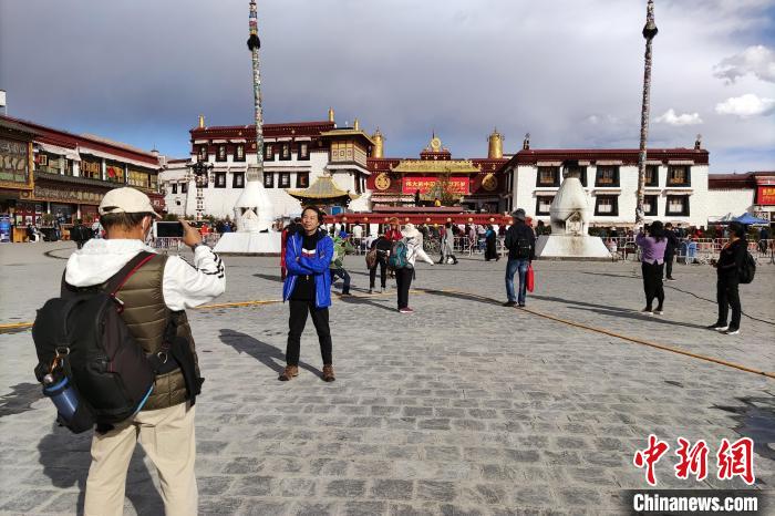 圖為(wei) 大昭寺廣場,遊客拍照留念。 江飛波 攝