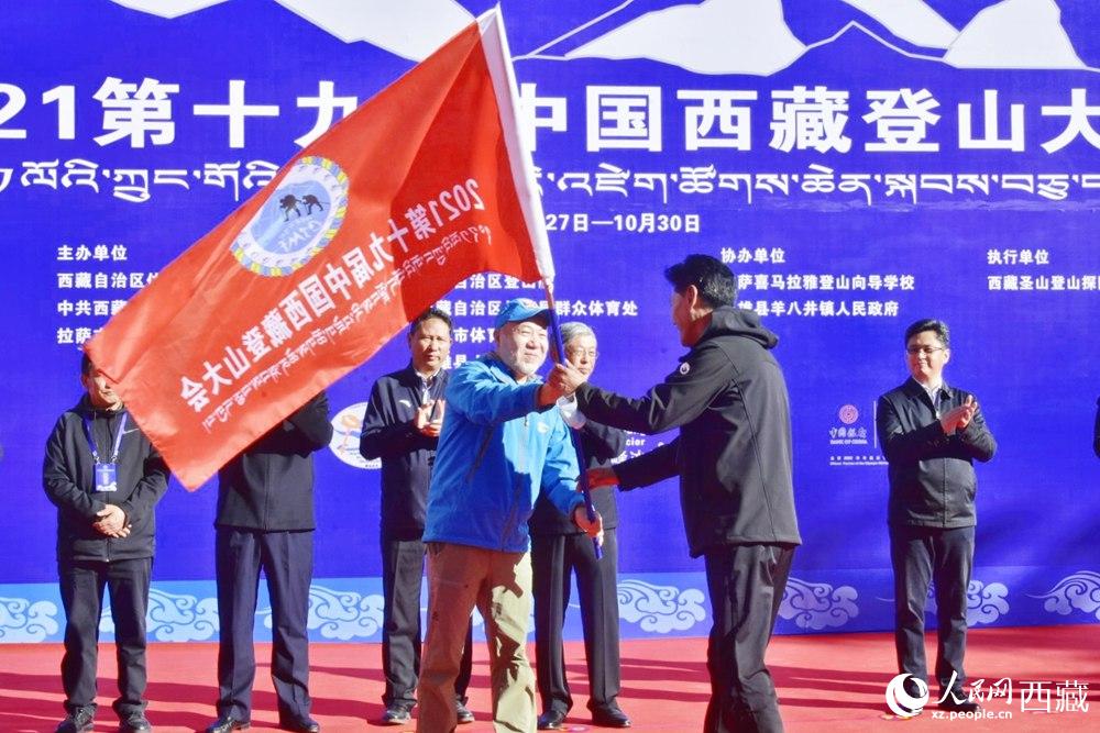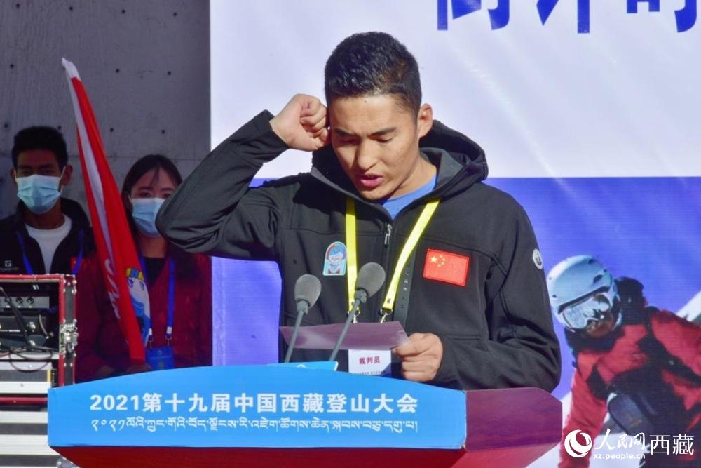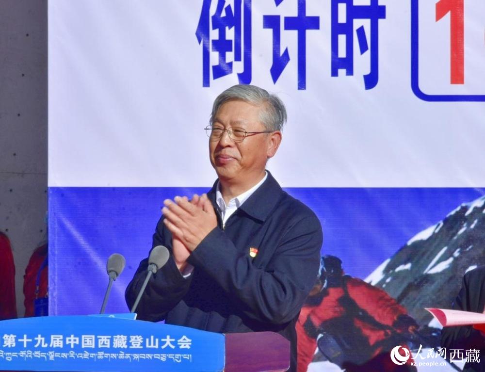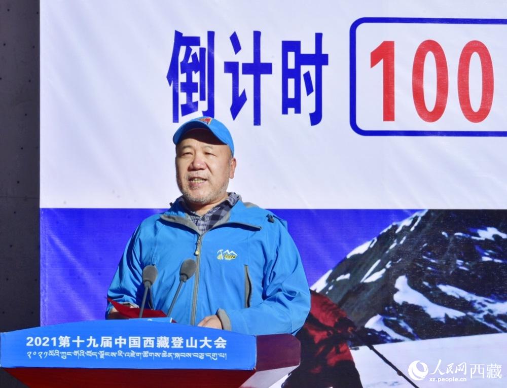 中國登山隊隊長王勇峰致辭。 人民網 李海霞攝