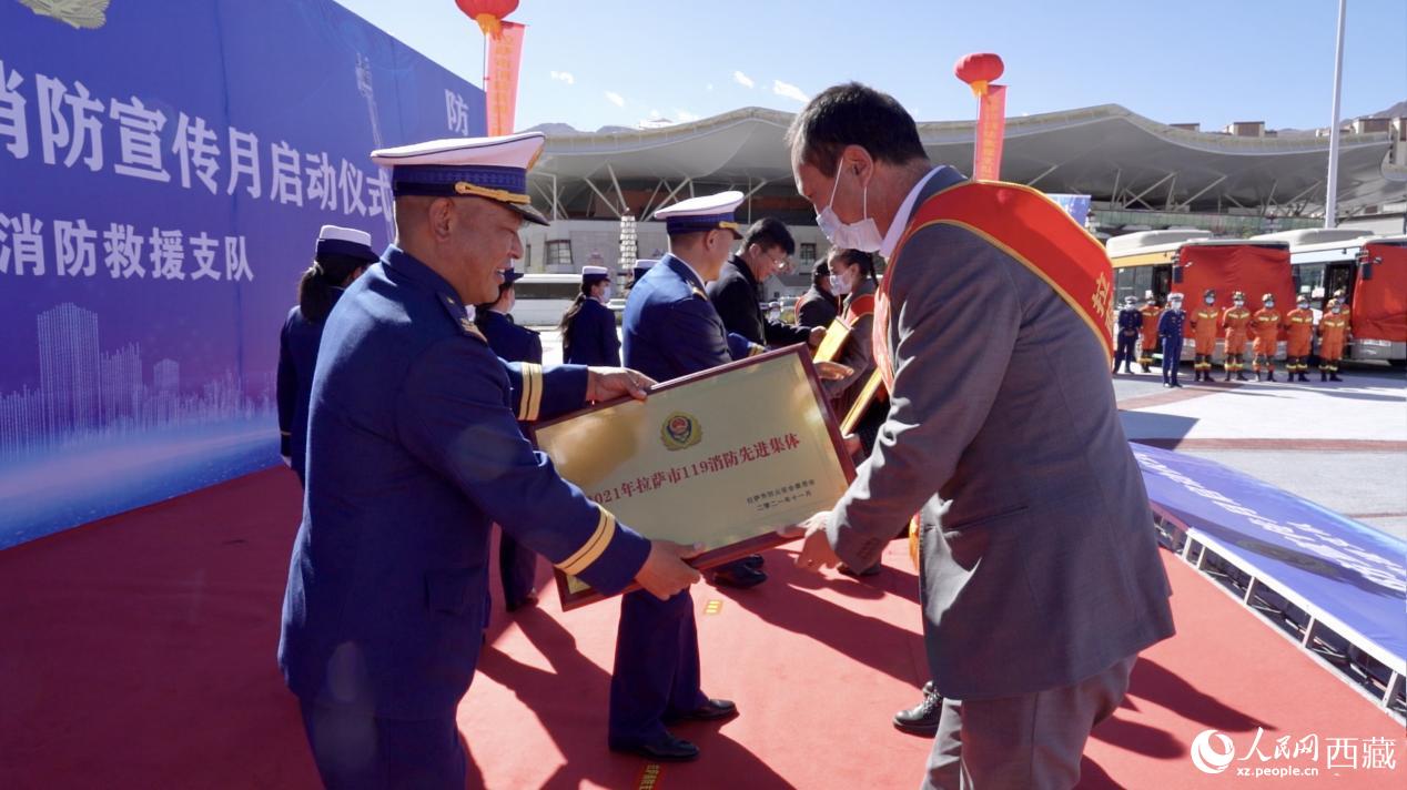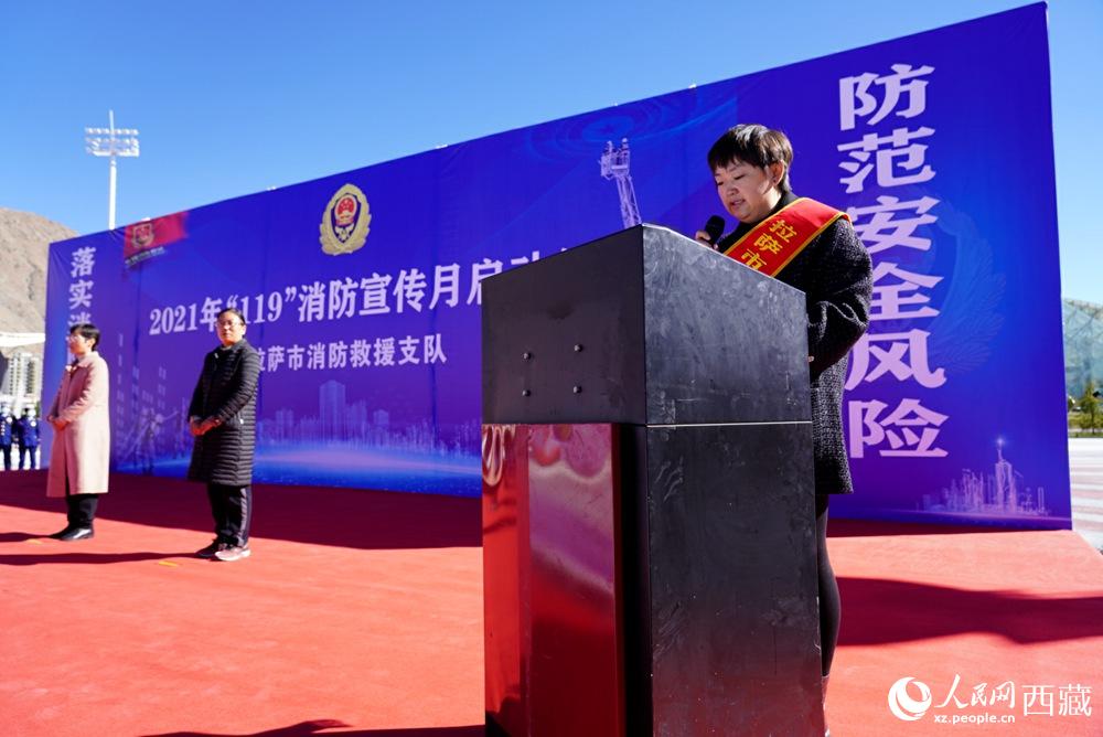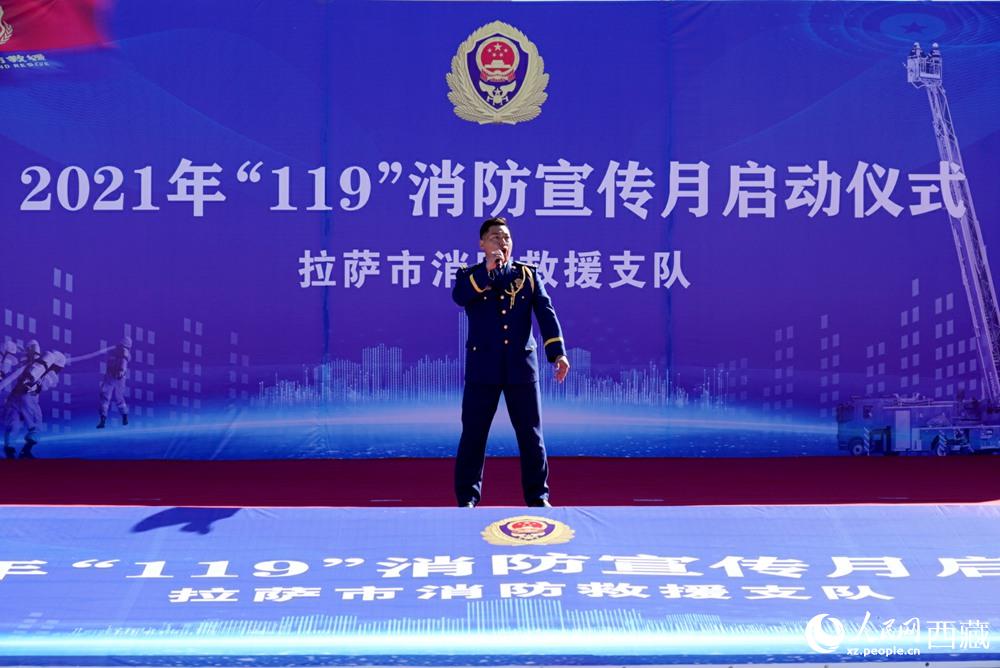 拉薩市2021年“119”消防宣傳(chuan) 月啟動儀(yi) 式現場。人民網 次仁羅布
