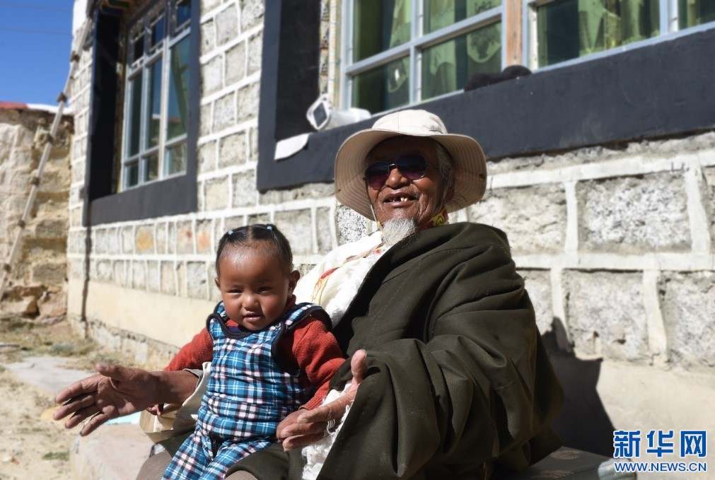10月30日,紮塔老人和孫女在院子裏曬太陽。新華網 旦增努布 攝