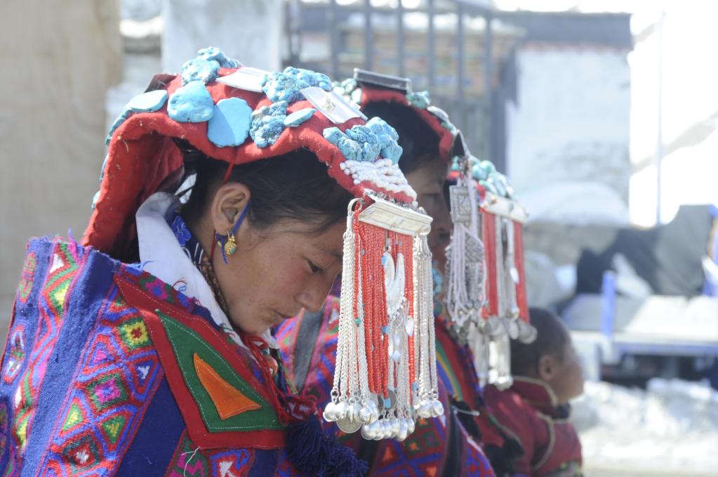 圖為(wei) 卡熱組藏族婦女穿戴的宣舞服飾。(楚魯鬆傑鄉(xiang) 政府供圖)