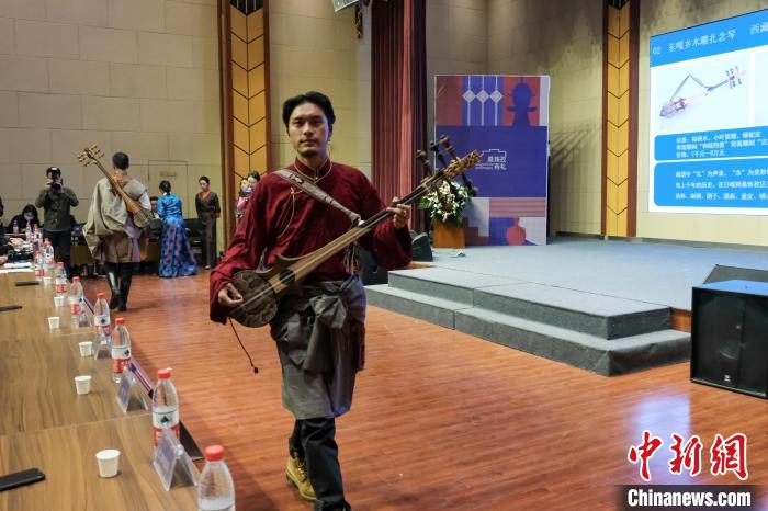 圖為(wei) 參賽方展示日喀則紮念琴。江飛波 攝