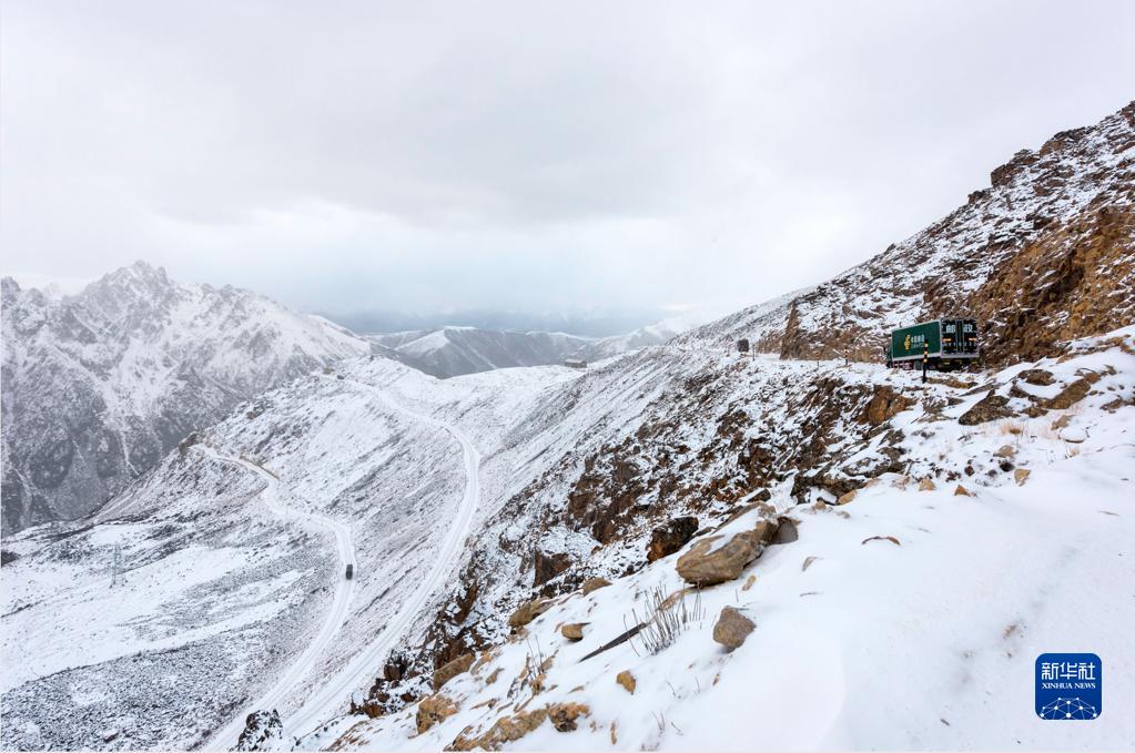其美多吉與(yu) 同事駕車行駛在雪線郵路上(資料照片)。其美多吉是中國郵政甘孜縣分公司郵運駕駛組的一名郵車司機,往返在甘孜縣與(yu) 德格縣之間。這段路程是四川省甘孜州綿延5866公裏、平均海拔超過3500米的雪線郵路最危險的一段。新華社發(周兵 攝)